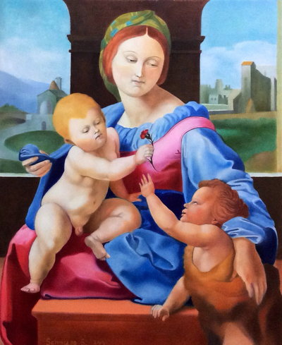 Our dear friend Sharon has completed a new work, an interpretation of the ancient icon of Christ that is in the Monastery of Saint Catherine in Sinai.
